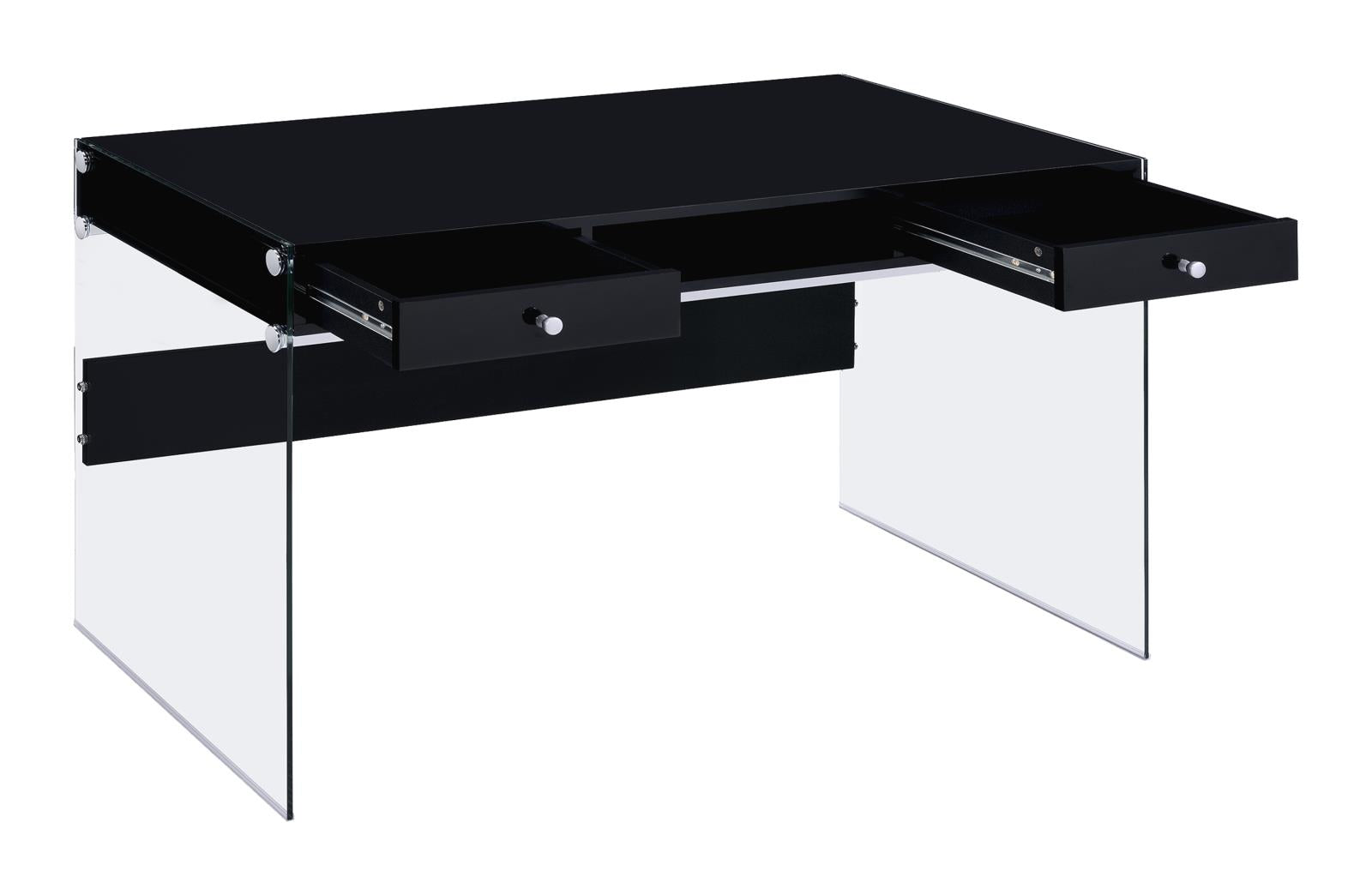 Dobrev - Dobrev 2-drawer Writing Desk Glossy Black and Clear