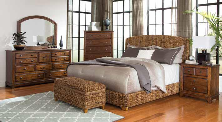 The tropical style bed from the Laughton collection is a handsome addition to the bedroom. Its frame is expertly crafted with mahogany solid wood and plywood for years of reliability. The bed is lovingly embellished with hand-woven banana leaf upholstered in an amber finish. It imparts a warm, inviting look that's sure to please. This bed is the perfect ambiance for resting and enjoying mornings and evenings to the fullest.